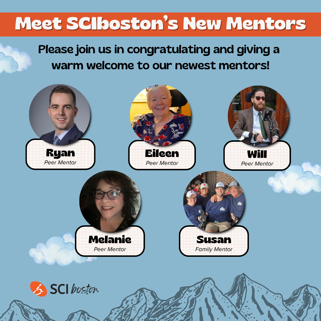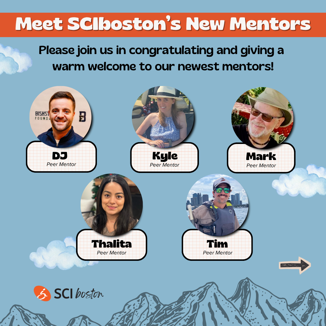 Are you or a family member looking to connect with one of SCIboston's trained peer mentors? Many people find it helpful, reassuring, and hopeful to talk to a mentor about adjusting to life after a spinal cord injury. Topics of conversation could include getting back to work or school after a sci, adaptive sports, relationships and intimacy, bladder and bowel management, and more. We match individuals with peer mentors based primarily on gender, injury level, age, interests, and family life, amongst other considerations. SCIboston's mentors also lead many of our virtual support groups, as well as attend them to provide support to others. SCIboston Peer Mentors have completed SCIboston and United Spinal Association Peer Training Program, completed HIPPA training, passed background checks, and are, in many cases, certified Spaulding Rehabilitation Hospital volunteers. If you'd like to hear more about the program or wish to connect with someone, please contact SCIboston's Peer Mentor Coordinator, Diane, at diane@sciboston.org to learn more today.
